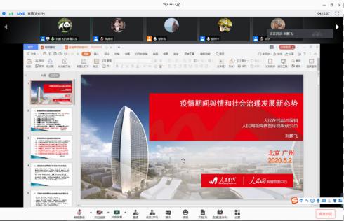 人民网舆情数据中心、人民在线副总编辑刘鹏飞则结合业界的观察与调研实践就疫情期间舆情和社会治理发展的新态势做了探讨。