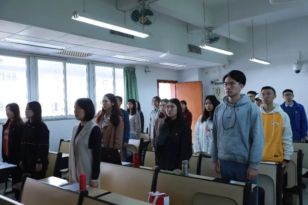 会议伊始,全体起立奏唱国歌。随后,董泽扬等5名学生党员分别开展自我评议,通过回顾近一年的时光来进行客观地总结与评价,汇报了自己的思想状态和工作情况,以及认真反思总结身上的优缺点。