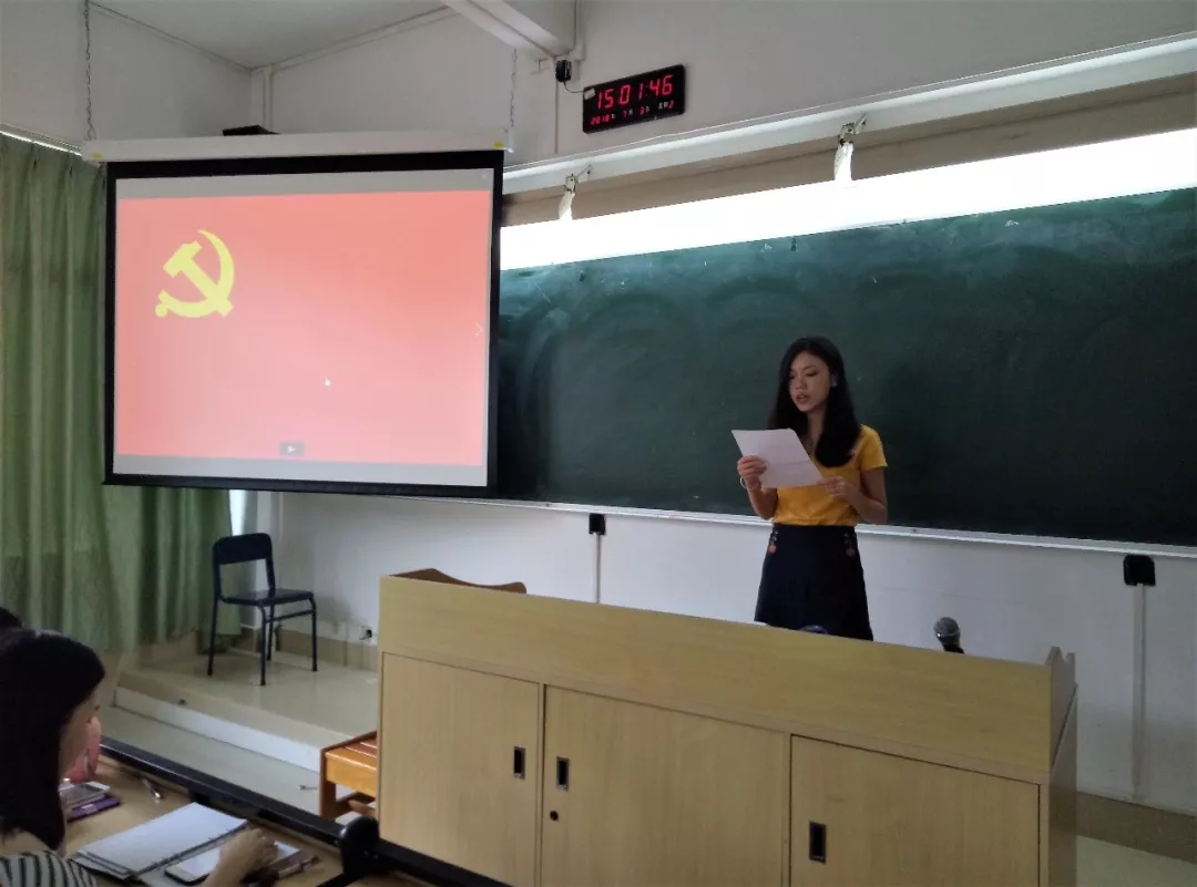 会议开始,学生党员董泽扬带领大家学习观看《广东新闻联播》关于中国共产党广东省第十二届委员会第四次全体会议决议摘要播发的视频片段与2018年3月21日全省传达贯彻习近平总书记重要讲话精神电视电话大会在广州召开的视频资料,学习贯彻习近平总书记重要讲话精神。
