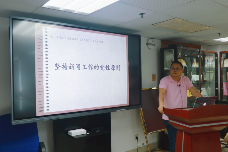 熊琦老师介绍了第三卷的主要内容,结合铸就中华文化辉煌新辉煌,从理论和历史两个维度展开讲述;他从党的新闻事的本质属性、政党政治、代表性政治、群众路线,到人民战争,熊琦老师以历史脉络为依据娓娓道来,他强调“新闻传媒是党和人民的喉舌。”正如,习近平总书记在“2.19"讲话中指出:“党的新闻舆论工作坚持党性原则,最根本的是坚持党对新闻舆论工作的领导。党和政府主办的媒体是党和政府的宣传阵地,必须姓党。”