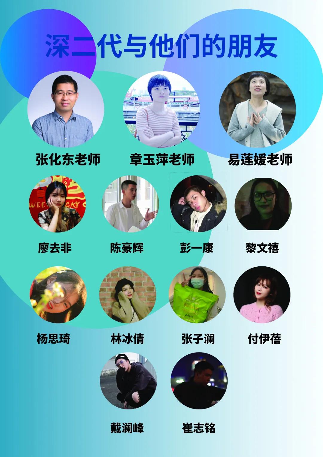 “深二代与他们的朋友”是在张化东、章玉萍、易莲媛三位老师的指导下,由19级同学于2021年2月组建的调查团队。其中廖去非、彭一康、黎文禧、杨思琦、林冰倩、张子澜、戴澜峰、崔志铭是深二代,而陈豪辉和付伊蓓是他们的朋友。