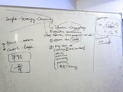 上午第3、4节课的《公共关系策划与实务》中,来自MSL的复旦师姐们带来了一节精彩的广告思维框架课。主讲师姐——Sara回顾了上节课关于头脑风暴的知识,强调思考case中的insight和strategy。一节课下来,收获最多的就是老师和复旦师姐们的逻辑思维框架。虽然我并未参透这套思维框架,但在日后看广告的过程中,我应该会多思考广告所蕴藏的insight与strategy。