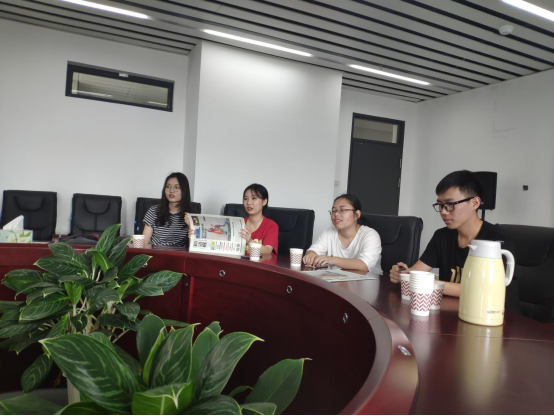紧接着,随着讨论了解的不断深入,“新闻窗”的代表围绕“新新报”的主要传播手段——报纸,展开了更深层的提问,想要了解报纸各个方面的具体内容与实践做法。“新新报”的代表也就此介绍了其发行面临的现实问题,具体操作上的人员安排、传播活动范围和版面设计等等内容,并为“新闻窗”一方提示了创办和开展报刊预备、新闻采写、选题选取和制作流程的细节。在了解到一定程度上报纸的实际操作后,“新闻窗”方代表也提出了对于融媒体时代报纸和纸媒的传播形式上的疑问和观点。在一个多小时的交流之中,新闻窗的各位代表在热烈的讨论交流中收获了满满的“干货”。