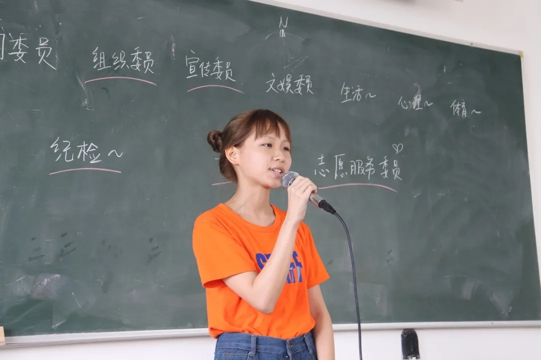 紧接着便进入了新生班会的环节,我们去到了一些班级的班会现场,他们中有的正在开展同学自我介绍,进行着第一次的班级破冰;有的正在进行老师发言环节,传递出班主任对学生们的期待与祝福。