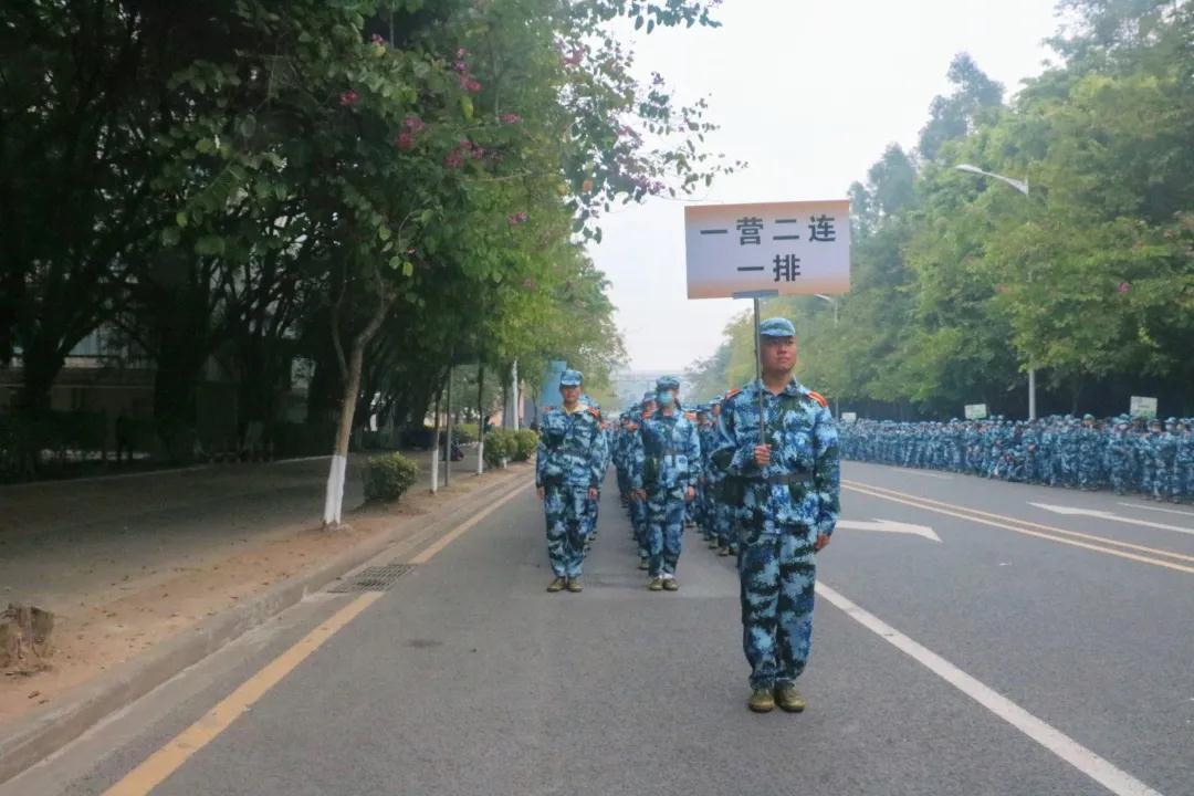 尽管天气并不十分美好,同学们身上洋溢着的热情,似乎要驱散空中的雾霭。8点30分,随着教官一声指令,徒步行军正式开始,新传的队列整齐划一,浩浩荡荡地走在行军路上。