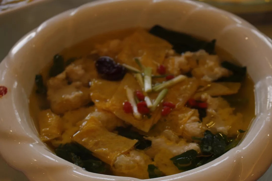 接着,我们去往织金县源俊水八碗饭店拍摄水八碗。水八碗主要是由金汤作为辅料,各种不同的食材最终汇聚于八道菜之中,其中还运用了八仙过海的美丽传说,充分表现出了织金人民对于生活的热爱与探索,以及热情好客的民俗。