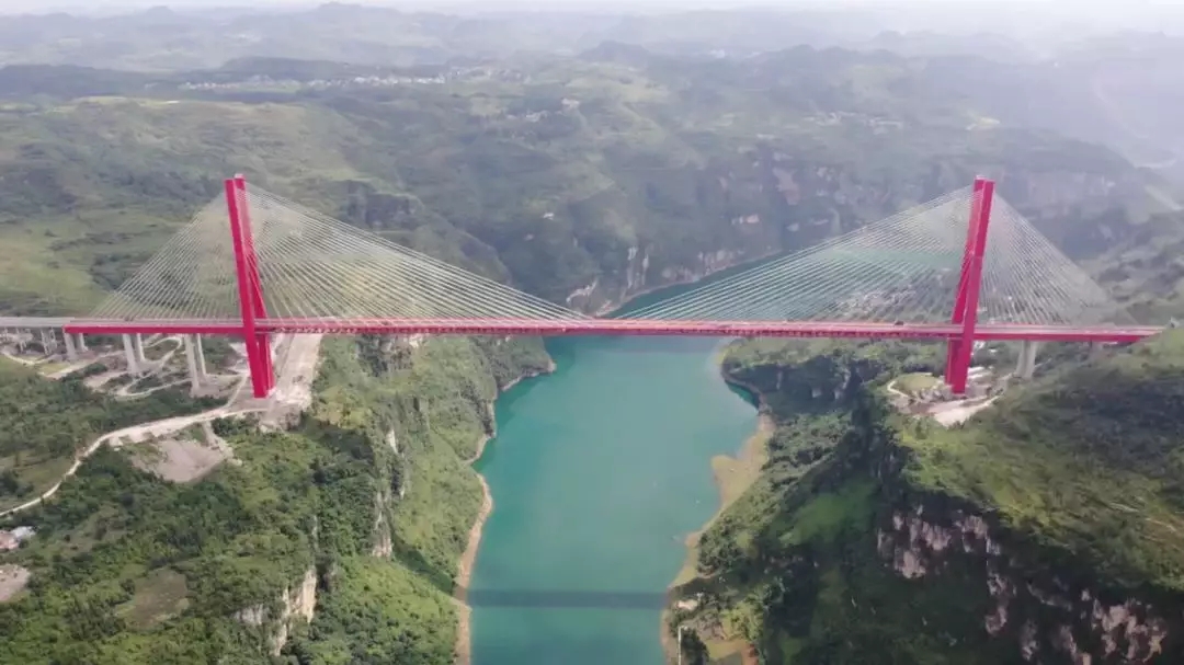 这座主跨长达800米、全长1450米的大桥是世界上最大跨径的钢桁梁斜拉桥,也是世界山区斜拉桥之最。大桥主塔采用H型索塔,贵阳岸塔高243.2米、黔西岸塔高258.2米,桥面距离水面距离为434米,高度排名世界第五位。