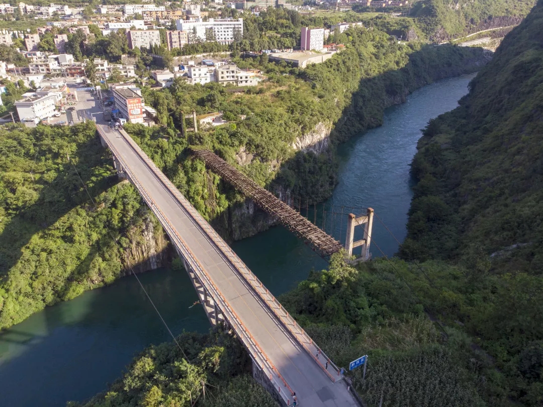 随后,我们拍摄了黔西的两座老桥——“鸭池河铁索桥”和“鸭池河大桥”。这两座并行横跨在乌江上游鸭池河畔,连接着黔西县大关镇与清镇市新店镇。在黔贵高速未开通、贵毕公路未建成通车前,这两座桥曾是毕节至贵阳的必经之路。