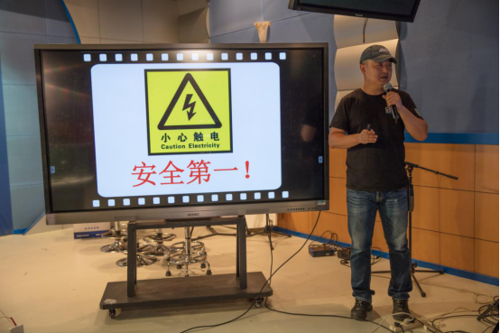 随后,灯光师通过现场演示详细生动地讲解了影视创作过程的灯光及其安全应用、操作等知识,让同学们具体了解了影视创作的构成要素;摄影师为同学们讲解了摄像机机位设置及拍摄操作方法、技巧,演示了摄像机的拍摄以及各机位不同角度拍摄的切换过程;汪润时老师结合着学校传达的文件精神,为同学们讲解实验室安全知识,以及实验室安全准入考试的相关内容;接着,同学们在老师的指导下,开始自己动手,操作机器,真真切切地体验到了如何安全地使用影视灯具来拍摄作品。