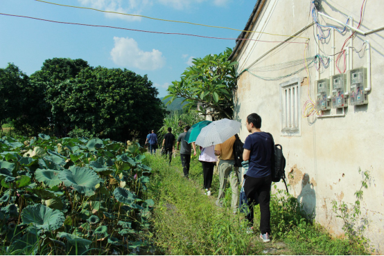 A组成员在前往贫困户家的路上(张楚咏摄)