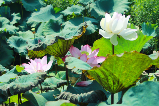载着我们的大巴直接从新修的大路进入黄堂村,沿路看过去,五十多亩的荷花池怀抱着满满当当的莲花莲叶。微风拂来,夹杂着丝丝缕缕的莲香,沁人心扉。