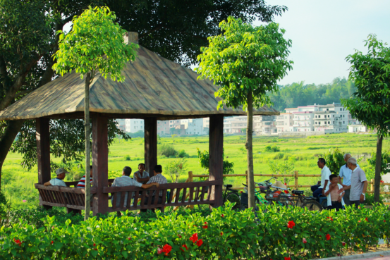 图为坝心村村民在凉亭下休息(孙芷芬摄)