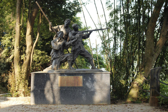 梅江区西阳镇北联村渡口之战遗址雕塑(张楚咏摄)