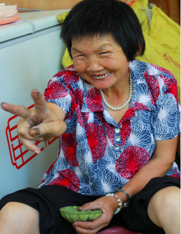 图为黄堂村一位奶奶在剥莲子(孙芷芬摄)