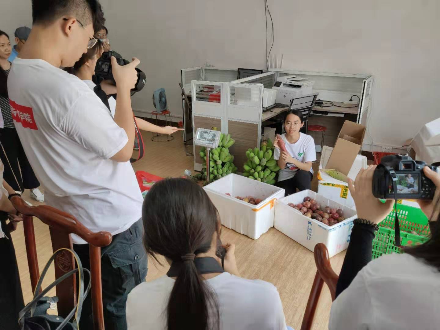 在广汽集团,王老吉大健康产业项目园以及金柚康公司等地,广大的学生还和综合频道的主播记者黎鲁蒙一起做一场两个小时的直播,以最快的速度分享梅州地区因脱贫攻坚政策带来的新变化、新风貌。截止当日晚七点,点击率已超过11万。晚上回到酒店,学生们还每天奋战到深夜,赶出当日采访的新闻稿。