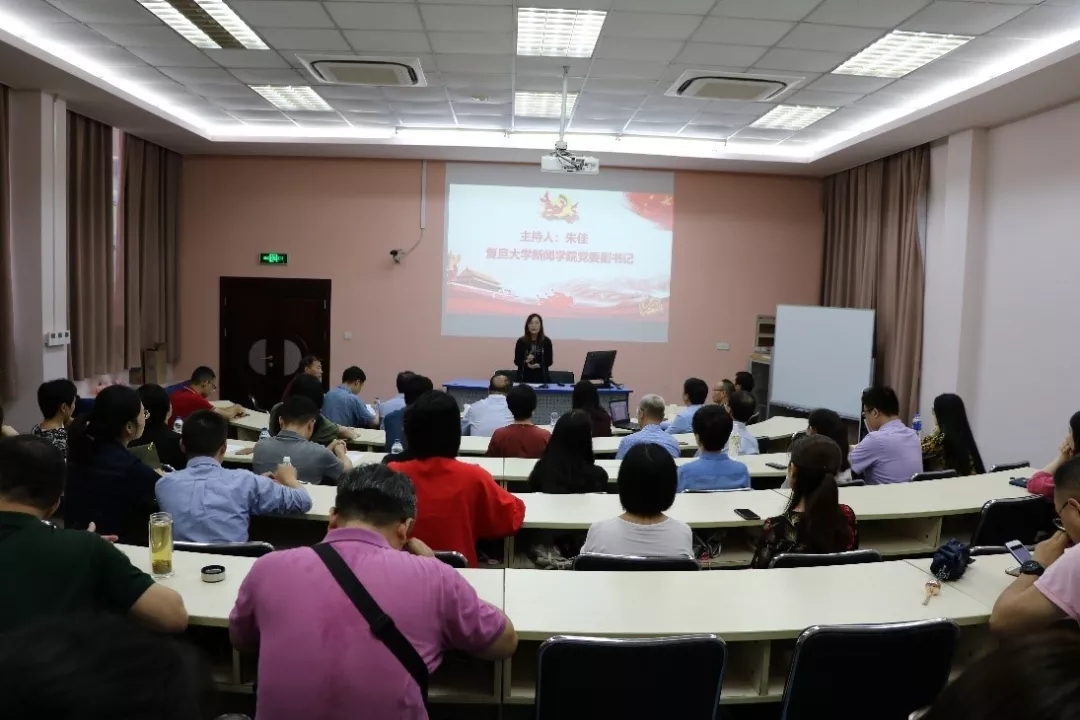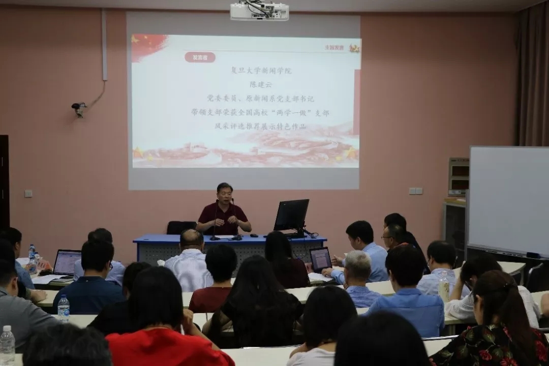 党委书记李雁、副院长李春雷、邹军以及两院50多名教师参加了党建活动。复旦大学新闻学院党委副书记朱佳主持了此次联合党建活动。