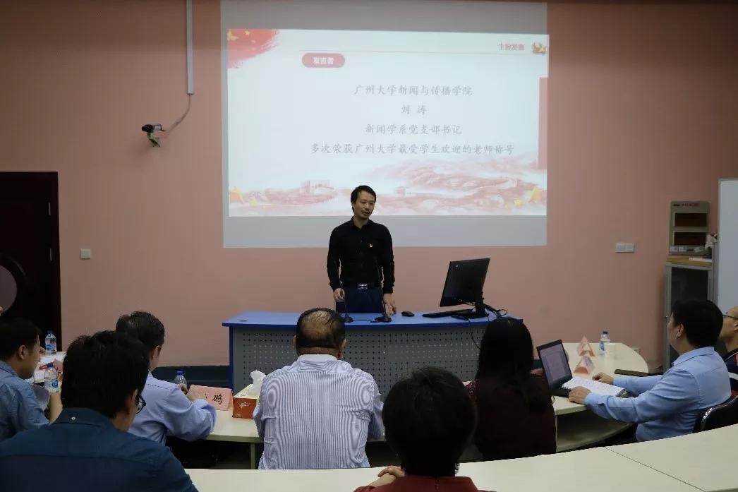 新闻系党支部书记刘涛老师分别围绕“如何做好教师党支部工作建设”和“回望初心肩负使命”做了主题发言,就新闻传播院系的教师党员如何坚守马克思主义新闻观、做好党的新闻宣传舆论工作、守望初心坚定信念分享了许多他们的思考与做法。