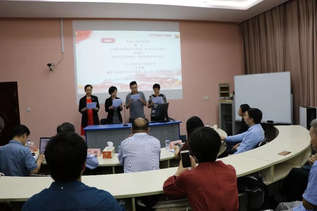 苏凡博、肖思为老师共同朗诵,他们饱含深情的朗诵,带领现场的老师们共同重温经典,回溯信仰之源。接着,优秀共产党员代表复旦大学新闻学院新闻系主任、党委委员陈建云老师和彩票网站