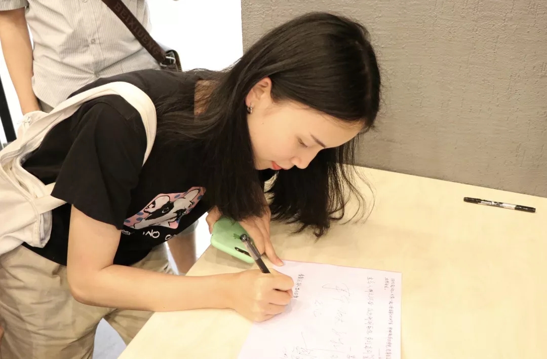 团员们积极在留言签到薄上写下自己对党、对国家的美好祝愿,通过现场展出的图文怀缅历史。