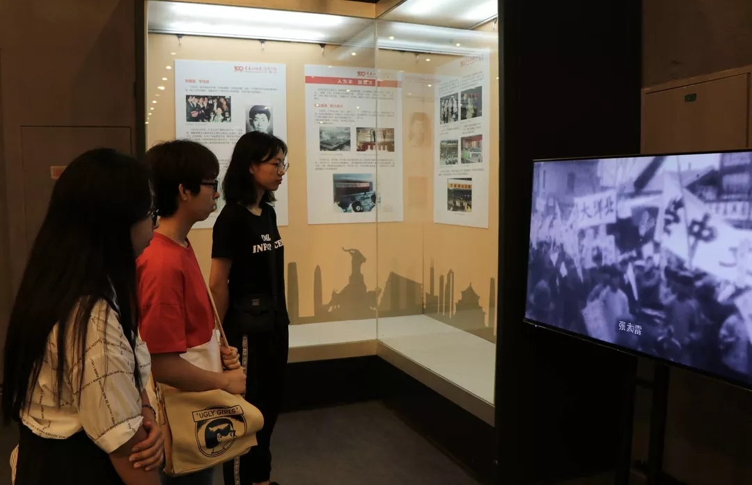 会后,学院领导和团员代表有序参观了在广州图书馆负一层展出的“青春心向党”广州共青团纪念五四运动100周年图片展。