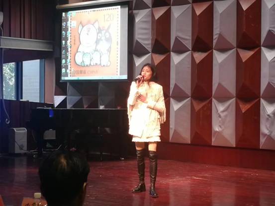 星海音乐学院研究生、央视星光大道季冠军获得者游佳佳为联欢会演唱《干杯朋友》