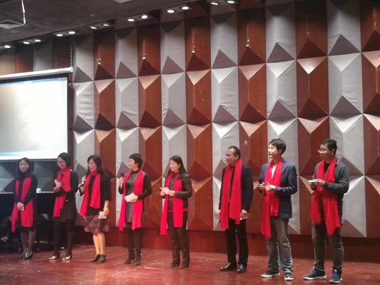 开场的第一个节目是六位学院领导带来的歌曲《让世界充满爱》,也借这首歌表达了对努力将学院建设成为一个友爱、和谐、充满凝聚力的大家庭的希望。