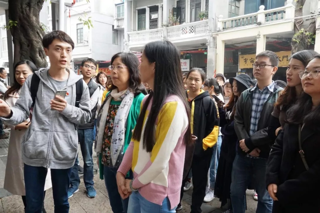 第一站来到荔湾区西关历史文化街区永庆坊。何军杰同学介绍道,永庆坊附近一带原本是挤满老房危房的老社区。万科用修旧如旧的修缮理念保留了旧城风貌,并把创客空间、文化创意等吸引年轻人的产业引入,成立了“微改文创街区”,让历史街区再现活力和新意。习近平总书记今年在考察永庆坊时,他边走边看,边听边问,并强调,城市文明传承和根脉延续十分重要,传统和现代要融合发展,让城市留下记忆,让人们记住乡愁。