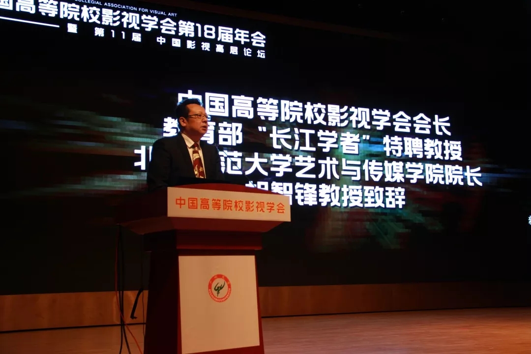 中国高校影视学会会长,北京师范大学艺术与传媒学院院长、 胡智锋教授在致辞中介绍了学会发展的三个历程:从电影教育到影视教育学术研究,再到学术评价。并就发展过程中遇到的瓶颈进行了探讨。