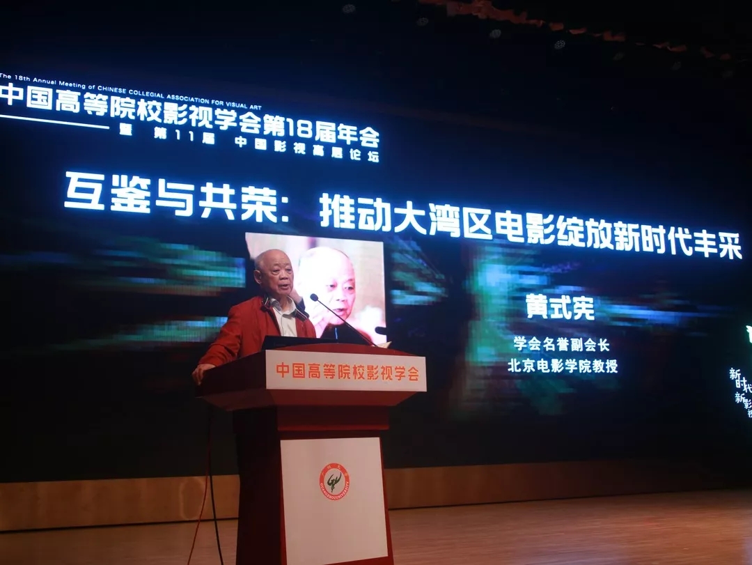“我亲历了改革开放40年,中国高等院校影视学会也走过35年,影视学会这三十五年的积淀牢牢地套在改革开放的四十年中。”中国高等院校影视学会名誉副会长、北京电影学院教授黄式宪回忆起中国高等院校影视学会的成立。他在题为“互鉴与共荣:推动大湾区电影绽放新时代风采”的演讲中,讲述了中国电影制作及其产业如何以文化自觉文化自信,主动应对全球化的挑战,以中国智慧之核来重塑“中国镜像”,彰显我们民族文化主体性的文化品格魅力等问题。