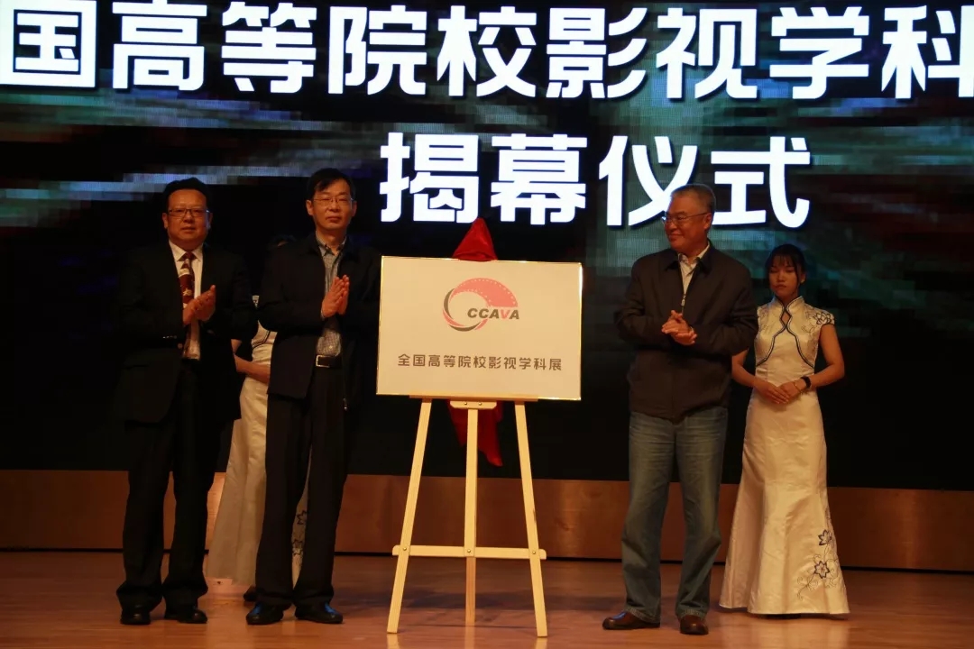郭运德、张其学、胡智锋共同为全国高等院校影视学科建设展揭牌。
