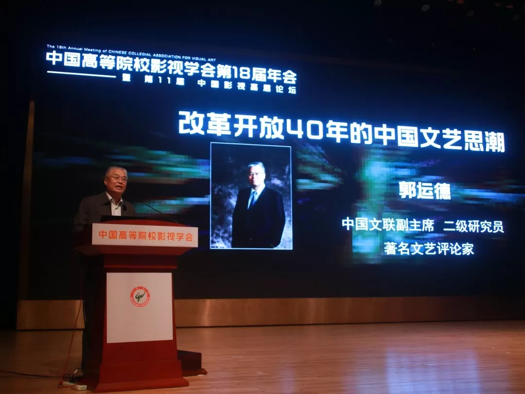 中国文联副主席、著名文艺评论家郭运德做了关于“改革开放40年的中国文艺”的主题演讲。他认为,新时期文艺走过40年辉煌历程,目前正处在文艺发展的黄金时代。他梳理了新时期文艺历史的发展脉络,将其概括为五大方面: