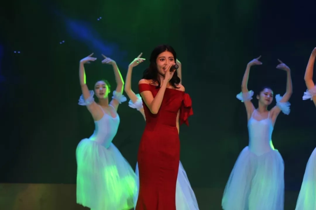 歌舞《春天的芭蕾》中,歌手游佳佳的美声唱法和广州大学音乐舞蹈学院学生舞团的芭蕾表演相得益彰,踏着音乐的节拍,舞蹈演员翩翩起舞,步履轻盈。