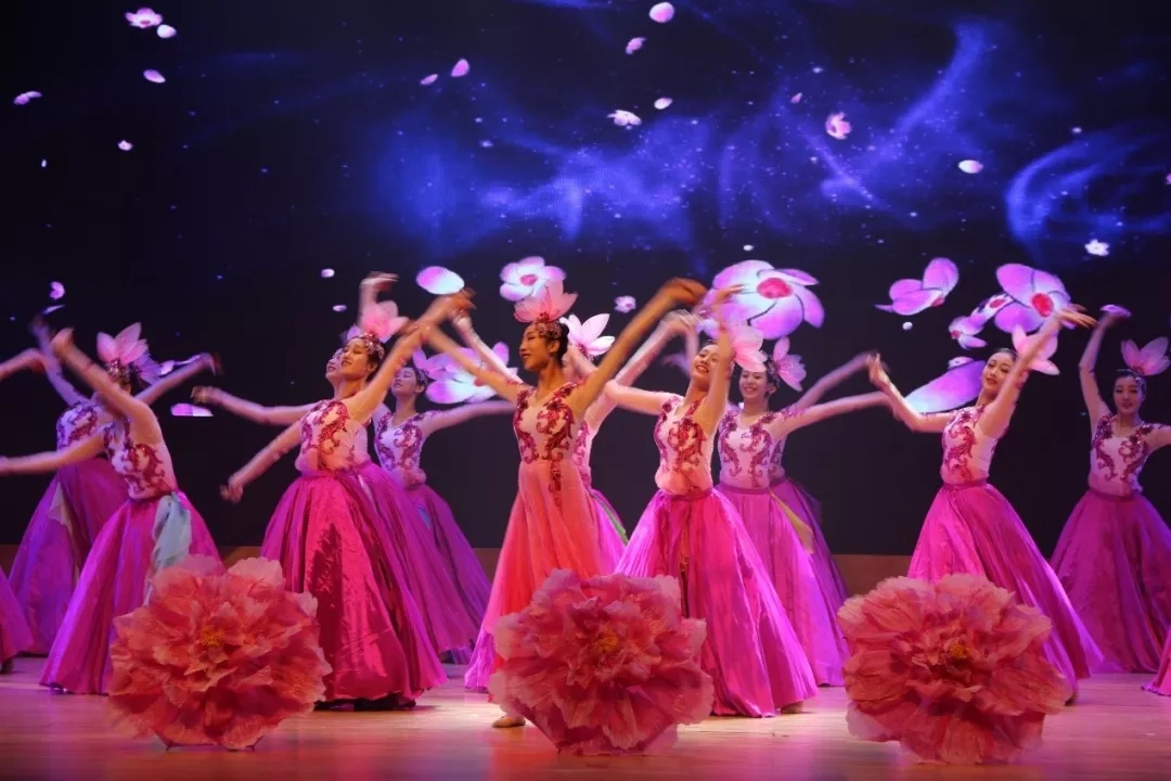开场舞蹈《相聚花城》中,广州大学附属广州歌舞团的舞蹈演员身着绚丽的服装,手持花型伞,一颦一蹙,尽显花城的独特韵味。