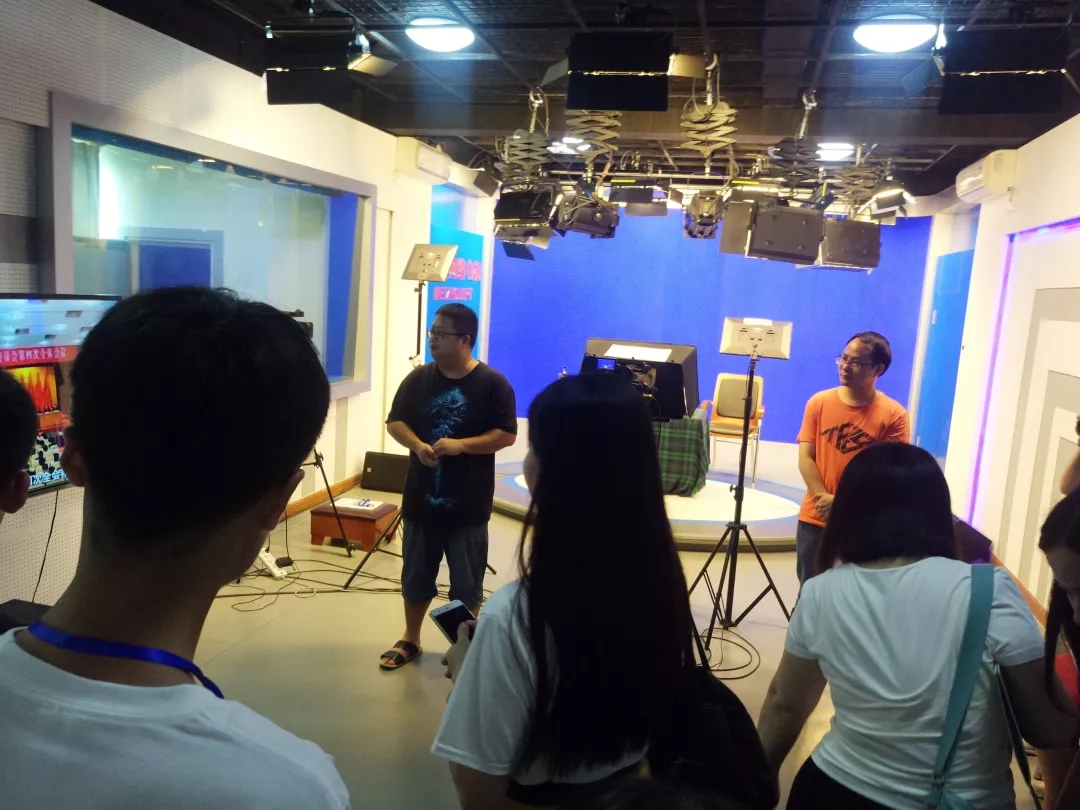一行还在电视台工作人员带领下参观了梅州广播电视台的内部布局结构,分别来到其网络编辑部、各大专题部、演播厅、新媒体中心以及梅州电视台所属子公司客都文化传媒有限公司等。至此,实践队的第一天行程已顺利结束。