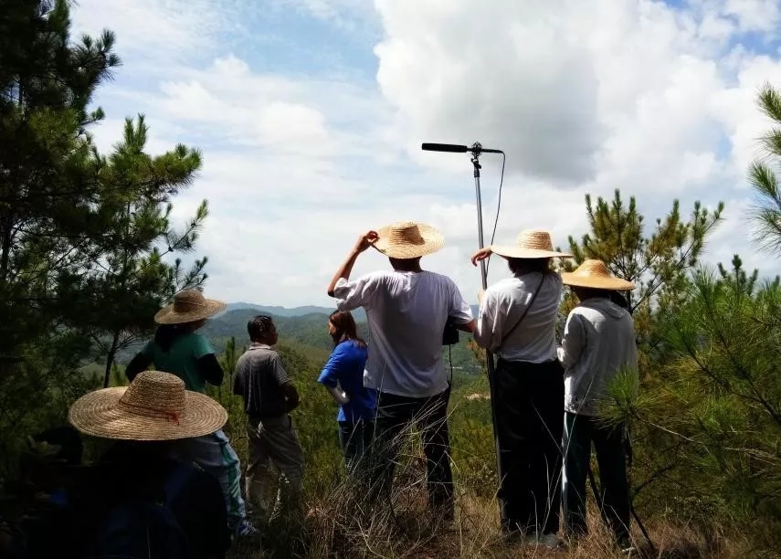 我们一行于上午六点出发,到达中兰村某个山脚下,已经八点多,此时东侧的阳光斜斜地投射过来。我们拿好器材和相关物品,在张主任等几位村干部和村民的带领下朝山上出发。