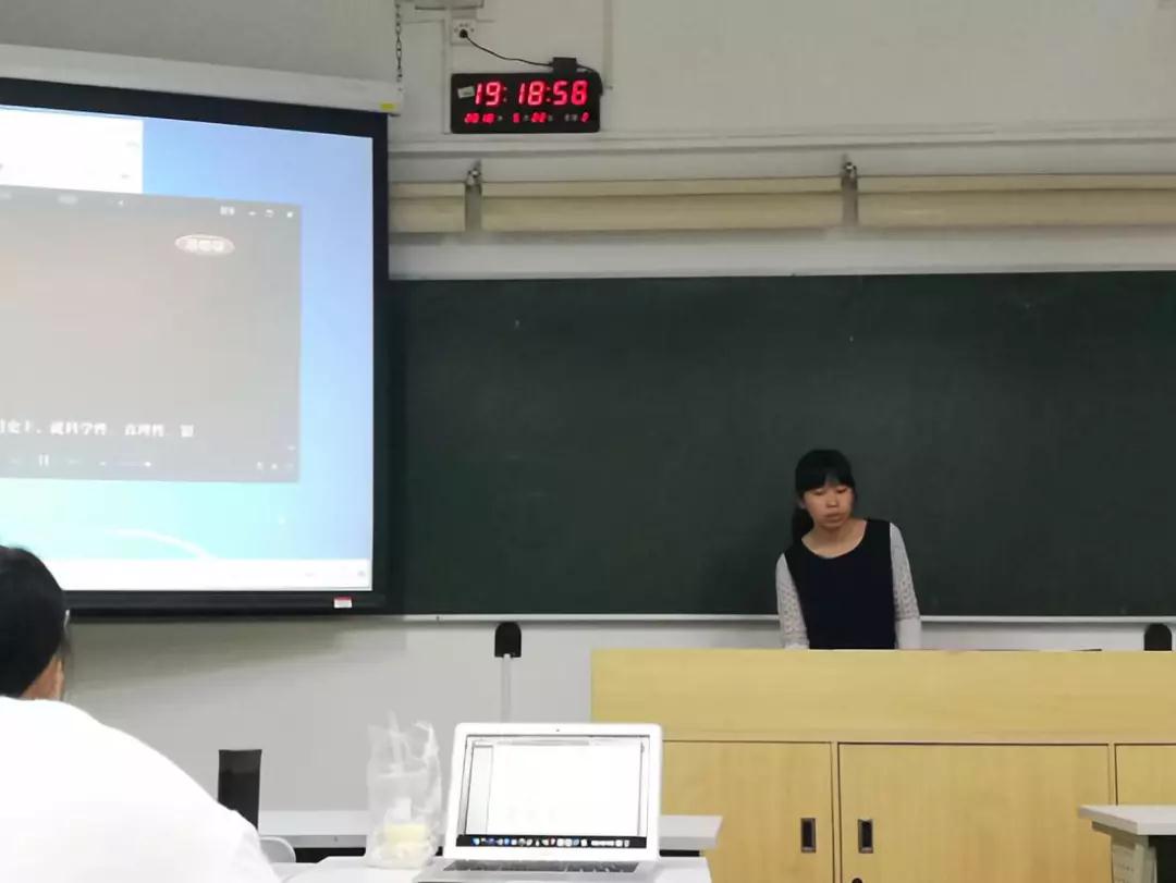 首先,邓纯榕同学为我们简单地介绍了访学前的准备工作。随后她向大家分享了自己访学期间的课堂体验,并总结访学期间的两次交流会。紧接着,陈漫琪同学上台后详细讲述访学期间对人民大学教学活动的感受。最后,由陈梓庆同学上台总结访学的活动经验。