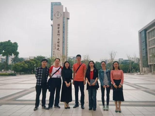 党委副书记林仲英与河源中学老师进行合影,河源中学师生也在图书馆广场合影留念。