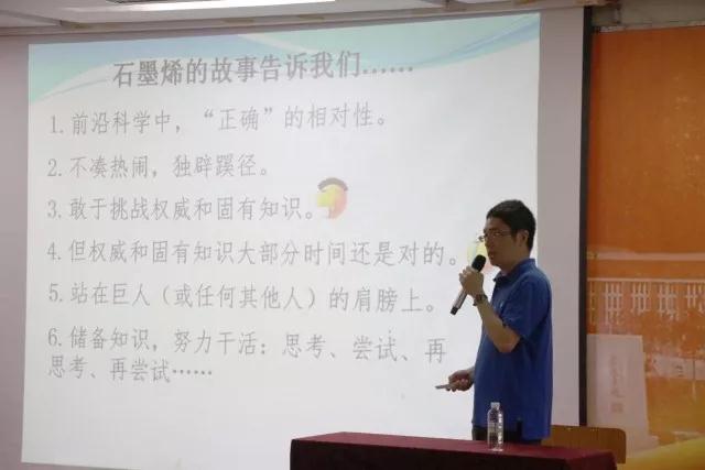 张教授通过石墨烯的故事启发在场的同学:“在前沿科学中,要认识到“正确”的相对性,敢于挑战权威和固有知识,但同时要认识到创新的困难性,学会站在巨人的肩膀上吸取经验,储备知识,不断地努力和尝试。”