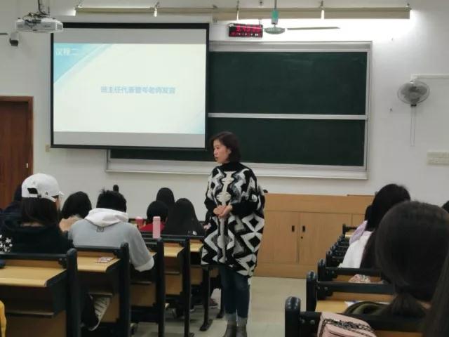 第二个议程,班主任代表曾岑老师发言。曾老师以中共十九大主题中的“不忘初心、牢记使命”向同学们提问:“你们的初心是什么?使命又是什么?”,同学们回应热烈。曾老师呼吁同学们应保持当年高考艺考时的初心,同时牢记作为学生的使命,好好学习,遵守学校的校规校纪。