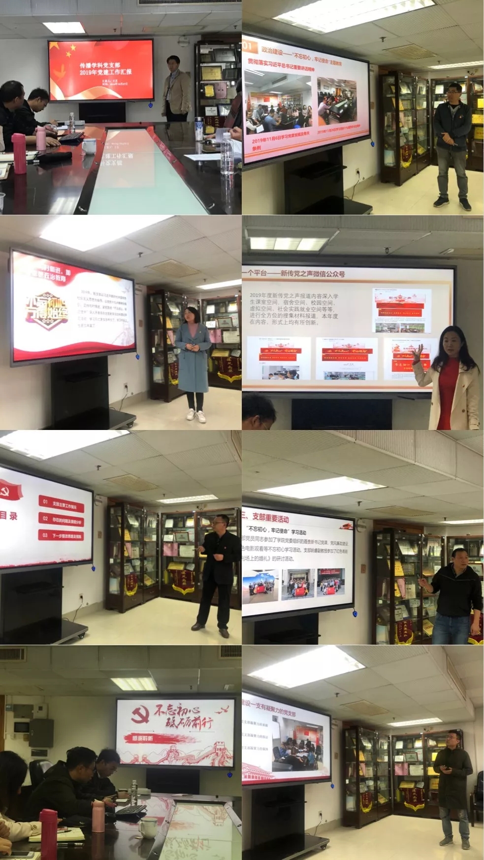 传播学学科党支部书记王艺从以活动为抓手、发挥支部党员的带头作用,发挥党员在学生赛事辅导中的骨干作用,保持思想政治学习的常态化与标准化进行了述职;并指出支部突出问题,如个别党员学习还存在懈怠、支部工作多样性有待加强等问题,并提出新的一年工作目标。