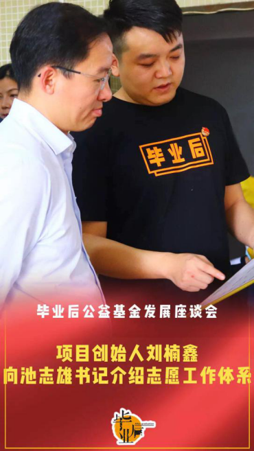刘楠鑫同学表示,在这个特殊时期,池志雄书记一行的到来让他和他的团队伙伴们感受到温暖和鼓舞;池志雄书记一行在座谈会上为项目发展提供了很多新视角、新思路和新方法;作为青年公益组织,他感受到当代青年应该肩负更大的社会责任和担当。