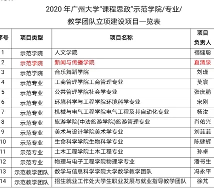 为落实全员、全过程、全方位育人,整合配置资源,形成工作合力,共同推动思想政治工作水平,我校开展了2020年广州大学“课程思政”示范学院/专业/教学团队建设项目及优秀教学案例评选,彩票网站