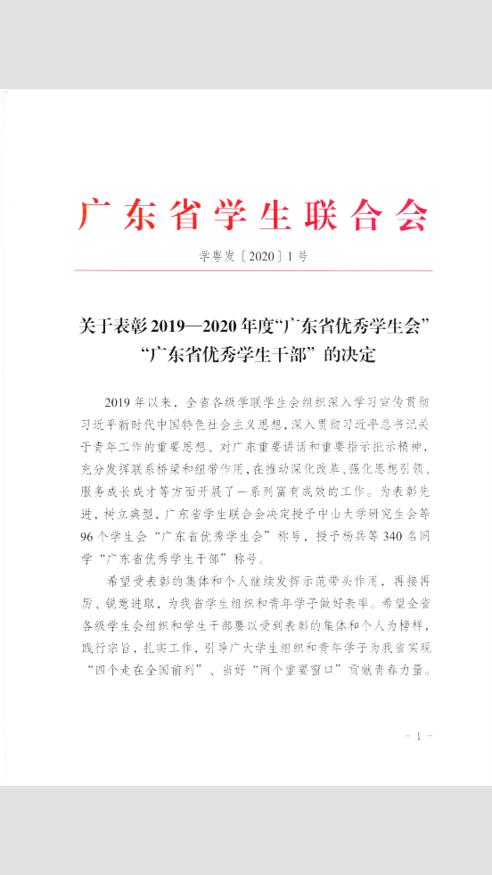 在五四青年节到来之际,广东省学生联合会对广东省优秀学生会及优秀学生干部进行表彰,彩票网站