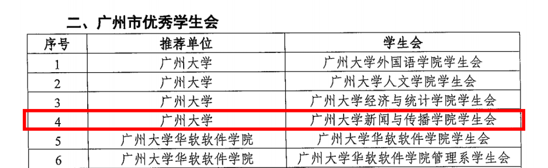 学生会获得广州大学“红旗学生会”称号、广州大学“红旗学生会标兵”称号。