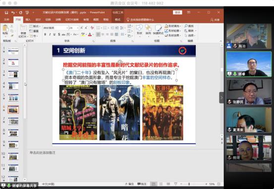 姚睿教授以《文献纪录片的创新发展——以<澳门二十年>为例》为题做主题分享。姚睿教授主要是围绕更具体的创作实践,从纪录片的一个具体类型——文献纪录片来展开分析,围绕《澳门二十年》的视觉分析,空间分析,时刻分析,声音分析来分析文献纪录片的创新发展。