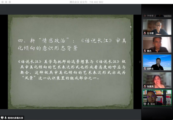 熊琦博士做题为《<话说长江>与20世纪80年代的文化政治》主题演讲。1983年8月7日,中央电视台与日本佐田雅治企划社合作拍摄的25集大型电视专题片《话语长江》以“电视连续节目”的形式在中央电视台播出,掀起了20世纪80年代专题片的“话语”热潮。这种“话说”祖国山河风景的热潮也成为20世纪80年代一道特别的“文化风景”。