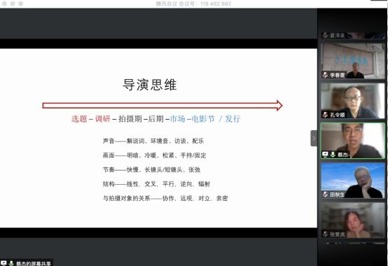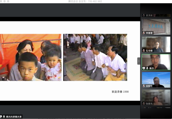 蔡杰博士首先以两个案例来展示身边事件对导演思维的启发。一是去年入选鹿特丹电影节的一部纪录短片,讲的是一个女导演去讲她自己家族的故事。看完这个影片之后,蔡杰博士觉得纪录片的真实感是可以慢慢建立在新技术跟新建设当中的。二是一部关于蔡杰博士家族的纪录片影像,内容讲述的是1998年的一场葬礼。从这个影像中蔡杰博士认为可以从疫情被困在家的情境,去跟当时的祖辈被困在历史洪流的这种情境,进行一些纪录和互动。