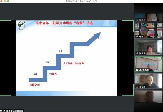 其次李春雷教授从技术变革促动纪录片功用的“逸散”轨迹方面来进行纪录片功用的分析,李春雷教授认为纪录片轨迹的梳理和技术主导的时代相关联,媒介技术助推了纪录片,把纪录片的创作生产放置到了文化工业的一个流水线上。而VR人工智能等等的一些强大的新媒体和网络的技术,使得我们游戏式的观赏体验的功能,乃至将来的智能接触与互动的功能,让受众在观赏过程当中得到了游戏快感和生理满足感,逐渐使受众观赏纪录片的动机、心理行为发生了潜移默化的认知转向。