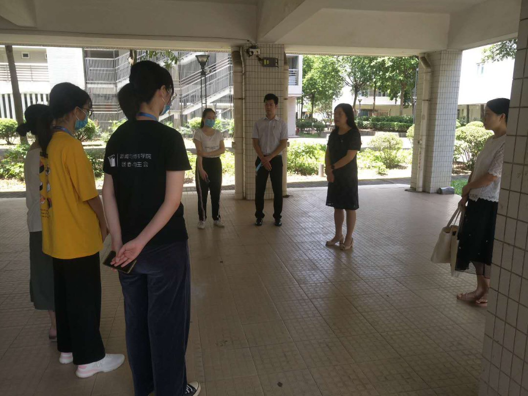 6月16日上午,彩票网站 李雁书记、方建平副书记、谭丰云老师、王子健老师看望彩票网站 返校学生。本次新闻学院返校学生共6位同学,分别住在不同的宿舍。