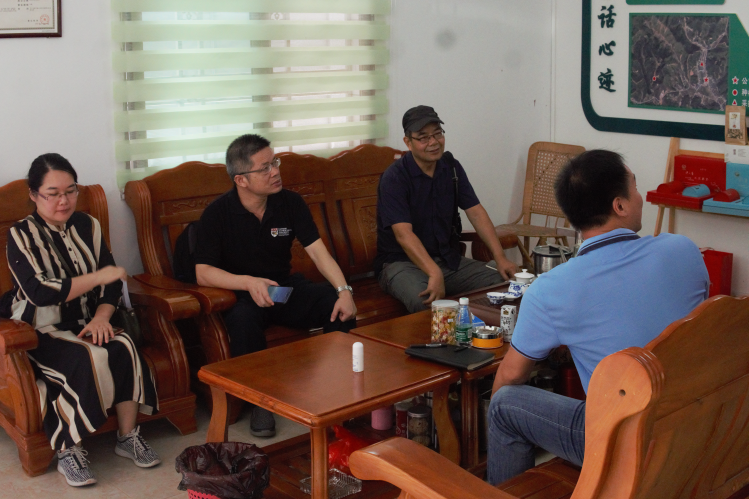 随后,郑书记邀请队伍到兴宁市四季美农业科技有限公司进行参观,到场后,公司人员热情招待队员们品尝当地生产的农产品,扶贫队伍与村委委员们愉快畅谈了近两个小时。公司董事长刘苑红向队伍介绍了当地的农村经济:公司积极拓展并利用山区资源,在大村村建立种植生产基地,规模面积达1300亩,带动农户大力发展无花果、红薯、食用菌等种植产业。郑狄杰书记分享了自己工作中的经历,包括基层党组织建设、第一书记的引领作用、政策的支撑及脱贫工作的发展思路和措施等等。